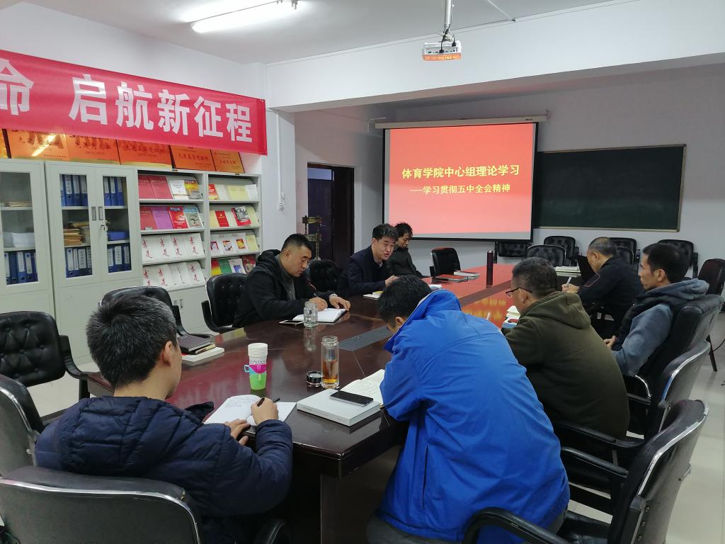 在学院三层党员之家组织召开中心组理论学习专题会议(扩大),院党委书记王政宇主持会议并对学习贯彻五中全会精神进行安排部署,学院全体党委委员及各支部书记、学科部主任参加学习。