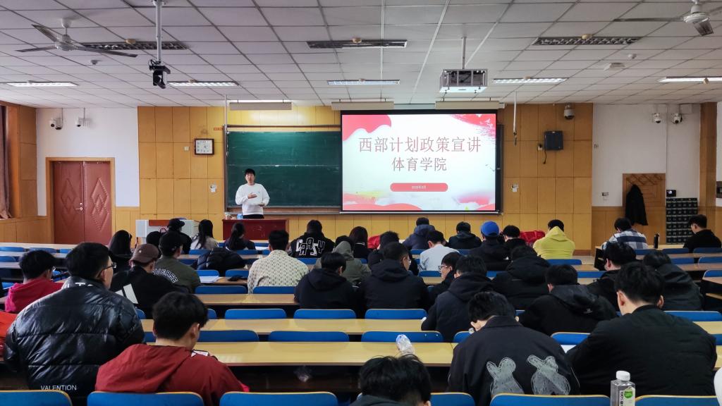 宣讲会上,李老师围绕2025年“西部计划”的招募流程、岗位类别、政策保障及服务内容展开全面解读。重点阐释了体育专业毕业生在基层教育、全民健身服务、乡村振兴等领域的发展空间,强调西部计划是“锤炼本领的实践平台,更是实现人生价值的重要机遇”。针对学生关心的岗位分配、待遇保障、服务期满就业支持等问题做了解答。