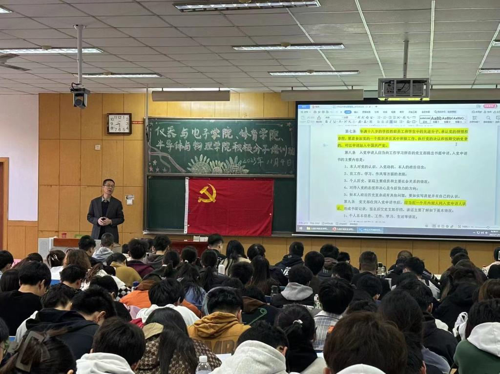 、仪器与电子学院共同举办了2023年秋季学期入党积极分子培训班,提高入党积极分子对党的认识,增强党性修养。