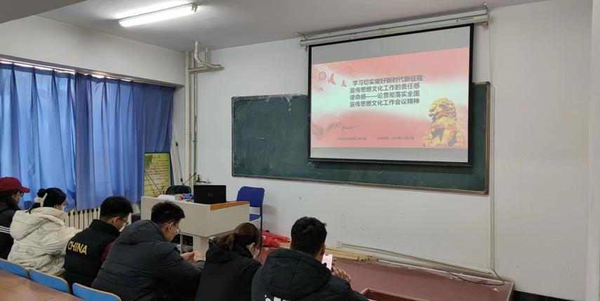 一楼多媒体教室针对《切实增强做好新时代新征程宣传思想文化工作的责任感使命感——论贯彻落实全国宣传思想文化工作会议精神》进行学习。