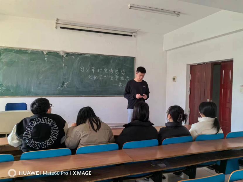 一楼多媒体教室针对《习近平对宣传思想文化工作作出重要指示坚定文化自信秉持开放包容坚持守正创新》进行学习。