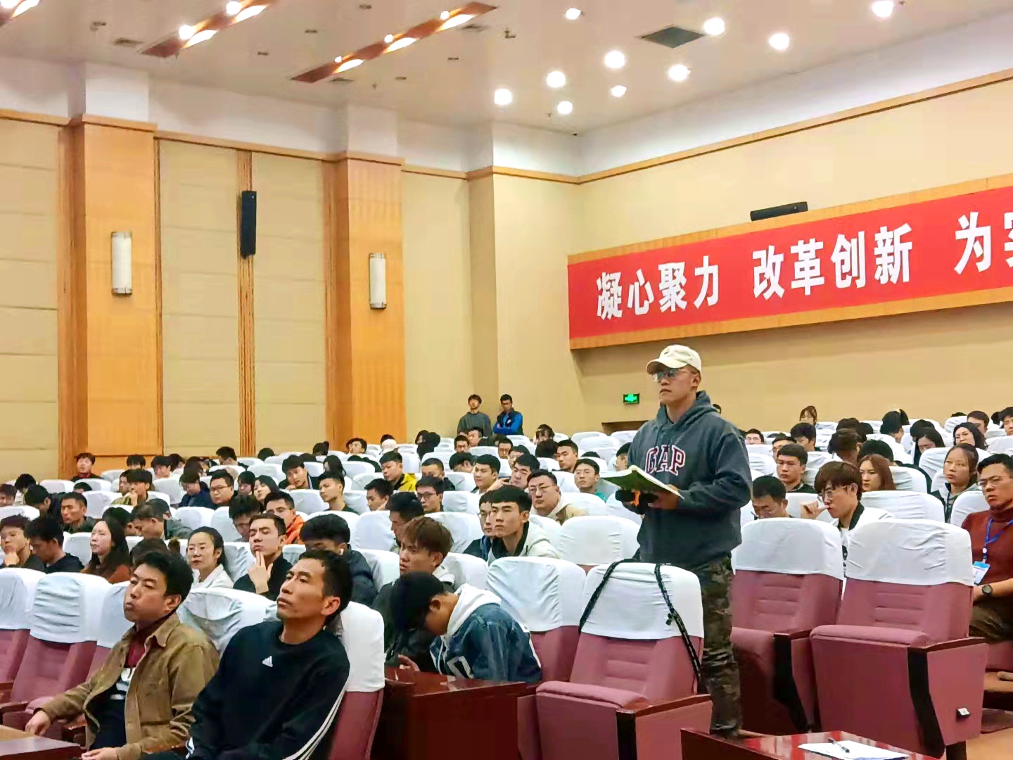 院长曹电康主持,全校二百余名师生参加。