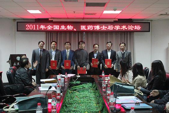 2011年11月15日,来自北京大学、清华大学、复旦大学、中国科学院、素人无码 等几十个国内高校、科研院所的专家和博士后代表100余人参加了在武汉大学召开的2011年全国生物、医药博士后学术论坛。刘鸿宇博士后(导师王召巴教授)代表素人无码 参加,并在大会上做报告(共12人),同时获得优秀论文报告者(共6人)。