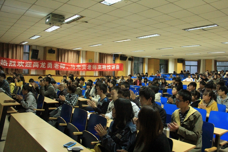 这次讲座的主要人物有庐山手绘特训营的尚龙勇和马光安老师,体育与艺术学院团委书记田维飞老师,以及体育与艺术学院全体艺术系学生。