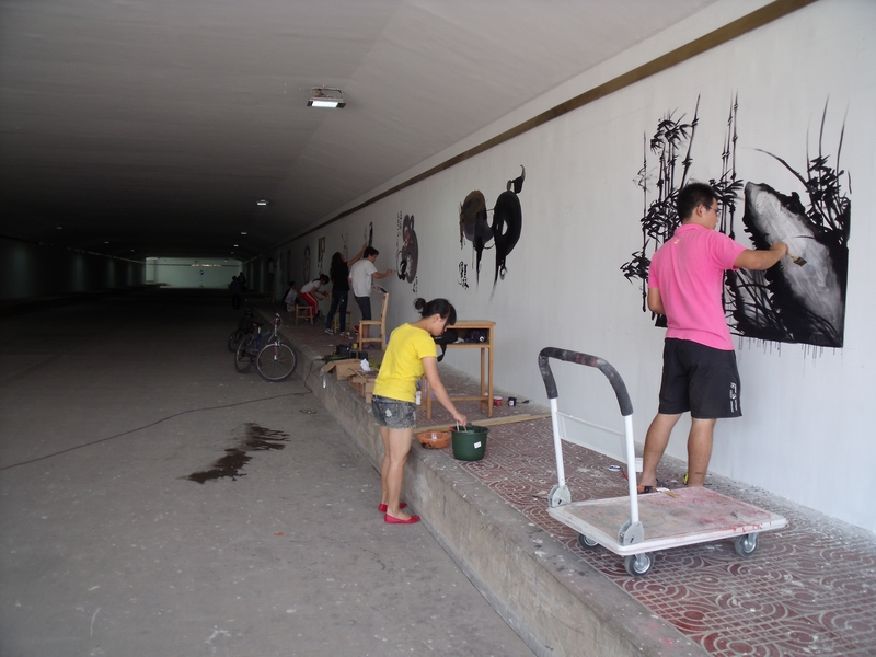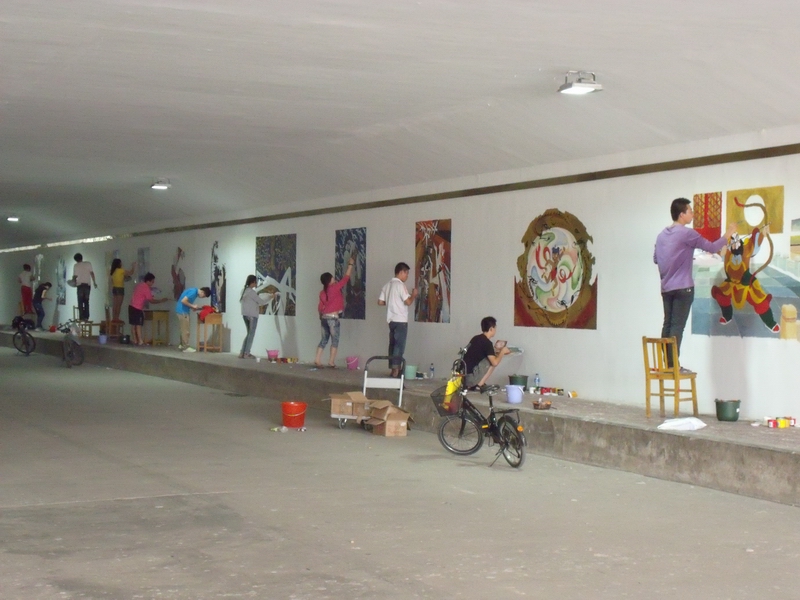 地下通道前来看望正在此处创作壁画的艺术系学生。此次留在学校为素人无码