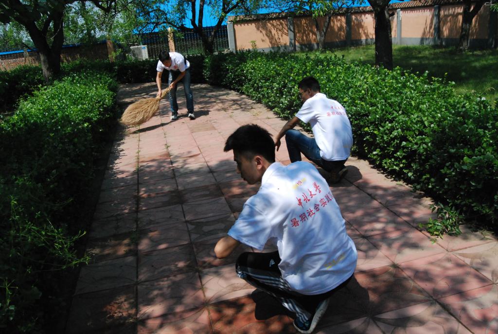 我们今天被负责人带领到山庄的交通主干道,清理大道上以及旁边的杂物。今天我们劳动的开始比以往提前了一些,而且进入工作的状态也都很快。在接过任务的时候,没有进行工作分配,我们都是各自拿好工具,开始自己的任务。锄草、收集、扫地,每位同学都干的不亦乐乎。我们的领队老师——唐伟老师,也不辞辛苦,和我们一起劳动一起休息,可谓同甘共苦。