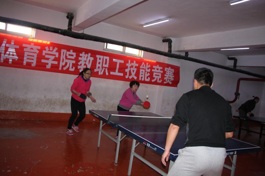全体教师、全校体育专业背景的行政工作人员参与比赛。比赛分组以专业教研室为基础,行政人员分别编入各队,共设6个队参加比赛。比赛实行单循环制,乒乓球团体和排球分别记分,总分按两个项目总得分计算,按名次进行奖励,比赛总时间为一周。