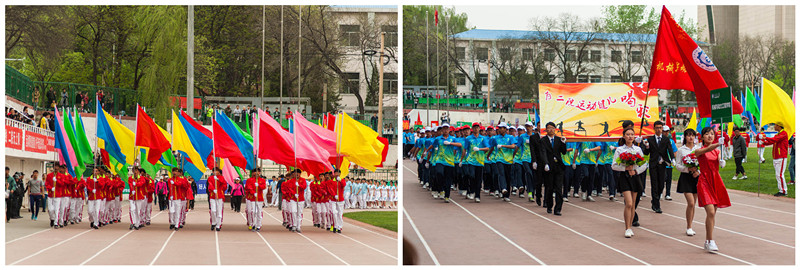 开幕式上,裁判组、国旗护卫队和16个学院的运动员方阵,踏着激昂的进行曲入场。别样的风采,别样的斗志,各学院方队精神饱满、英姿飒爽、活力四射并且独具特色,青年人对梦想和青春的憧憬和追求,在精致整齐的服装、嘹亮一致的口号和精彩纷呈的表演之中大放异彩。看台上,每位师生都以自己最诚挚的声音和呐喊为方阵行进中的运动健儿们加油助威。各方阵陆续走过主席台并在体育场站定。之后,庄严雄壮的国歌声奏响,全场肃立,国旗在铿锵的乐声中冉冉升起。