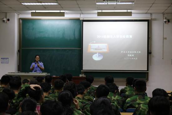 学生安全的注意事项,随后讲述了一些全国各地学生中有关安全问题的案例。郭老师提醒新生重视自身安全,面对各种突发状况要保持冷静,并及时向班主任老师联系寻求帮助。