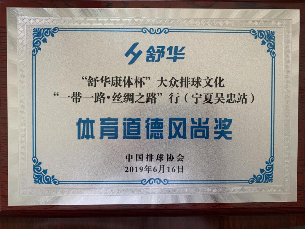2019年6月13日-16日,由国家体育总局球类运动管理中心、宁夏回族自治区体育局、宁夏回族自治区教育厅、共青团宁夏回族自治区委员会、吴忠市人民政府主办,宁夏排球协会、宁夏学生体育艺术协会、吴忠市文化旅游体育广电局、吴忠市体育总会、宁夏星动传媒有限公司承办的“舒华康体杯”大众文化“一带一路·丝绸之路”行(宁夏吴忠站),在吴忠滨河体育公园召开。